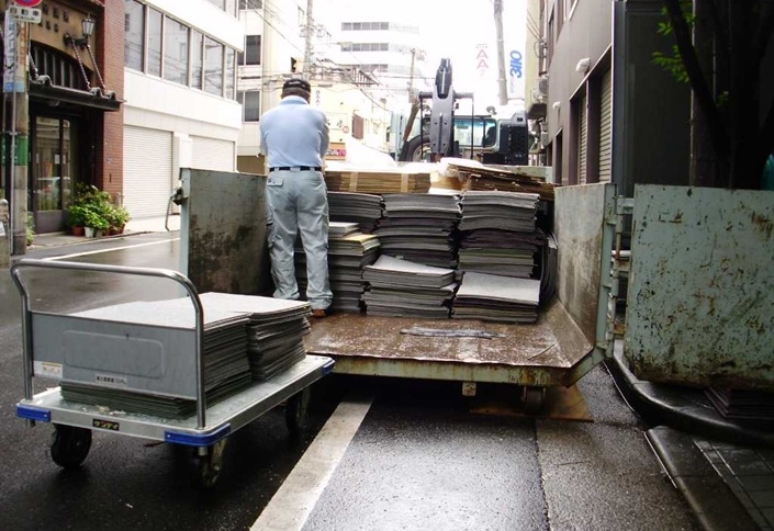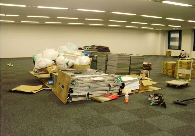 8、廃材の搬出作業 発生した廃材をタイルカーペット施工時に搬出処分。